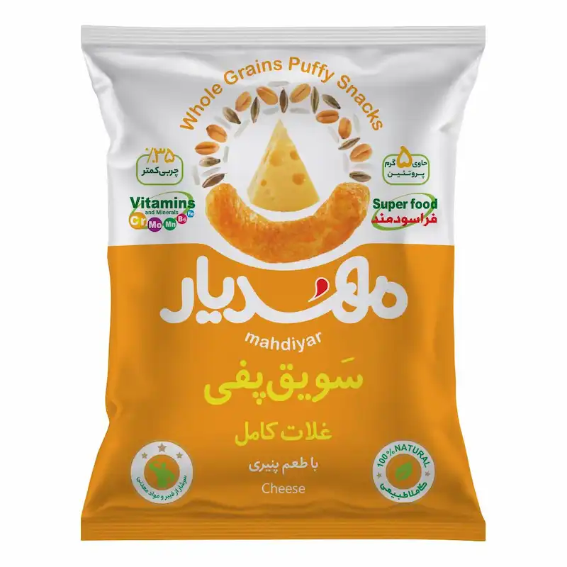 سویق پفی غلات کامل با طعم پنیریPuffed Whole Grain Cereal Flour with Cheesy Flavo