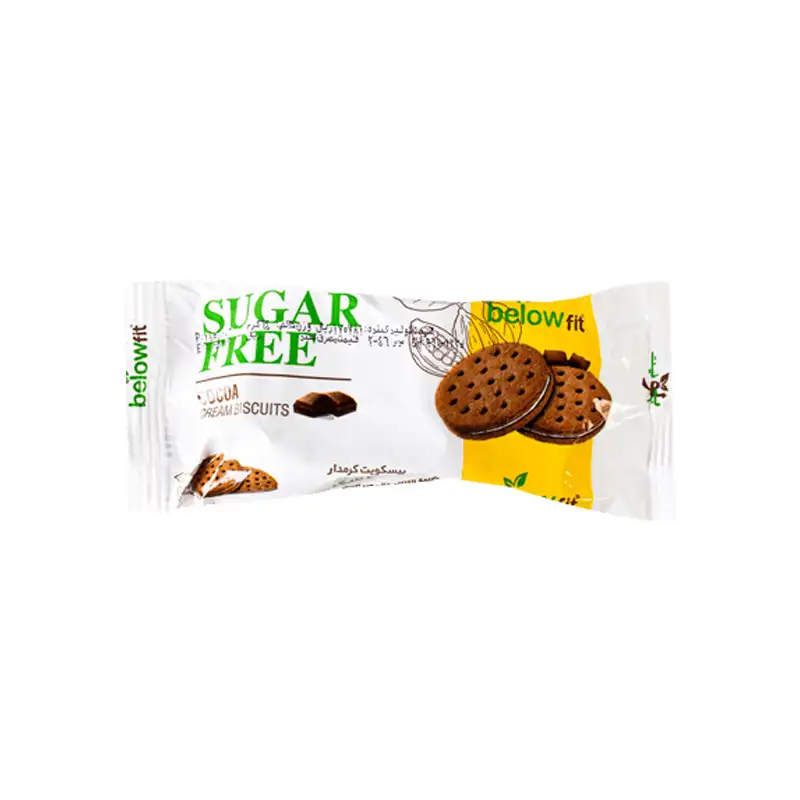 بیسکویت کرمدار کاکائویی بدون قند بیلو - 60 گرمیbelow Sugar-Free Chocolate Cream Biscuits – 60g